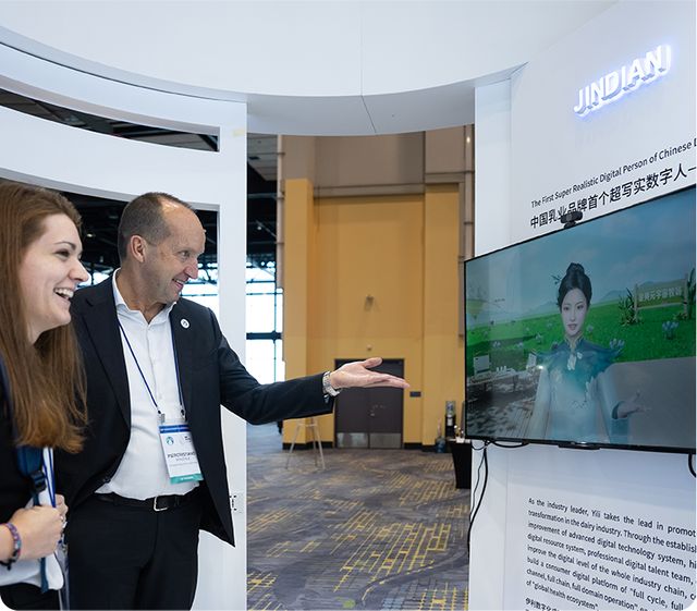 在品嘗伊利全線產品夢幻美味的同時,還可與中國乳業首個超寫實數字人——金典品牌數字代言人“金婰”實時互動,為全球嘉賓帶來生動、真實的數字化體驗。