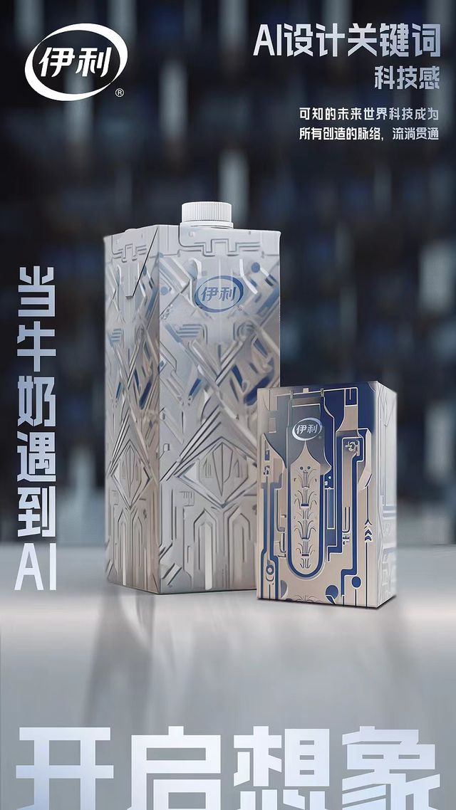 與此同時,伊利也在加速推進以其為代表的AIGC技術的產業應用。近日,伊利推出首款乳品AI包裝,從概念到視覺設計,都是由AI參與甚至主導,開創了乳品行業先例。尼爾森的調研數據顯示,47%的消費者認為高端的產品要擁有超群的設計。伊利此番推出AI包裝,不僅迎合消費者的審美升級,也為乳品行業探索了一條AI應用的新路徑。
